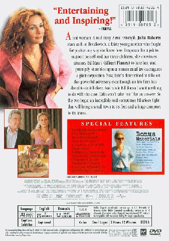 | 520 ^aภาพยนตร์ที่สร้างจากชีวิตจริงของผู้หญิงธรรมดาคนหนึ่ง เอริน บร็อกโควิช ที่หย่าร้างและดูแลลูกสามคนตามลำพัง ชีวิตของแม่ม้ายลูกสามอยู่อย่างแบบคนสิ้นไร้ไม้ตอก แต่เธอกลับเป็นหัวหอกสำคัญในการฟ้องร้องต่อศาลเรียกค่าเสียหายมูลค่ามากกว่า 300 ล้านเหรียญสหรัฐให้กับผู้คนที่ได้รับผลกระทบจากการลักลอบปล่อยสารพิษปนเปื้อนลงน้ำใต้ดินของบริษัทแปซิฟิก แก๊ส แอนด์ อิเล็กทรอนิก จำกัด นอกจากเอรินต้องทำหน้าที่แม่ดูแลลูกๆ ของเธอแล้ว แต่ยังต่อสู้ให้กับผู้ด้อยโอกาสที่ถูกสังคมเอารัดเอาเปรียบอีกด้วย