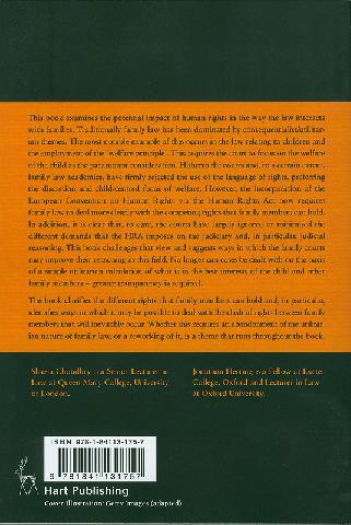Contents: The European Convention on Human Rights and family law -- The Human Rights Act : scheme, principles and implementation -- Human rights in family law -- Marriage -- Parenthood and parental rights : intention, family life and the parent -- Children's rights -- Private law children cases : a rights perspective -- Human rights and child protection -- Domestic violence : the extent of the problem and the recognition and use of a human rights discourse -- Financial disputes and human rights -- Concluding thoughts