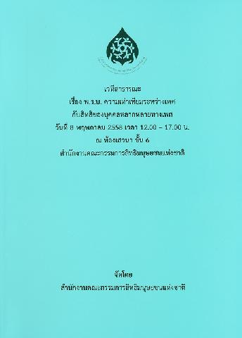 | รายการใกล้เคียง หัวเรื่อง [พระราชบัญญัติความเท่าเทียมระหว่างเพศ พ.ศ. 2558] |