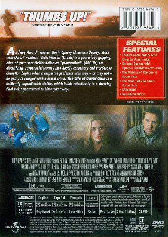 | 500 ^aSpecial features (37 min.): optional audio commentary by Parker; "Death in Texas" featurette (9 min.); 3 deleted scenes, with optional audio commentary by Parker (3 min. total); "The making of 'David Gale'" featurette (17 min.); "The music of 'David Gale'" featurette (5 min.); 3 poster concepts; theatrical trailer (3 min.); 15 cast & crew bios; DVD-ROM features