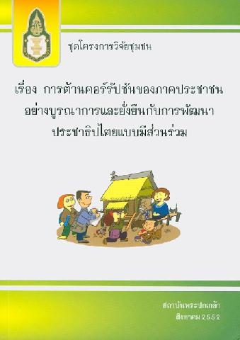 การต้านคอร์รัปชันของภาคประชาชนอย่างบูรณาการและยั่งยืนกับการพัฒนาประชาธิปไตยแบบมีส่วนร่วม / วีระ สมความคิด ; บรรณาธิการ, ถวิลวดี บุรีกุล