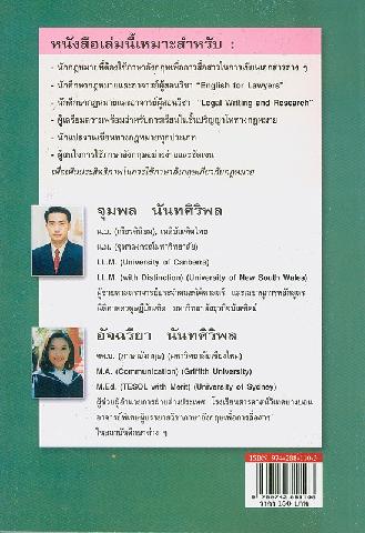 | รายการใกล้เคียง ผู้แต่ง [จุมพล นันทศิริพล] หัวเรื่อง [ภาษาอังกฤษสำหรับนักกฎหมาย] |