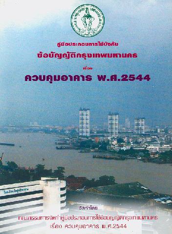คู่มือประกอบการใช้บังคับข้อบัญญัติกรุงเทพมหานคร เรื่อง ควบคุมอาคาร พ.ศ. 2544 / คณะกรรมการจัดทำคู่มือประกอบการใช้บังคับข้อบัญญัติกรุงเทพมหานคร