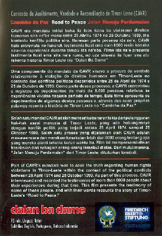 Summary: Documentary of political conflicts in East Timor between April 25, 1974 and October 25, 1999; testimonies of some of people in East Timor as interviewed and recorded by Commission for Reception, Truth, and Reconciliation in East Timor.