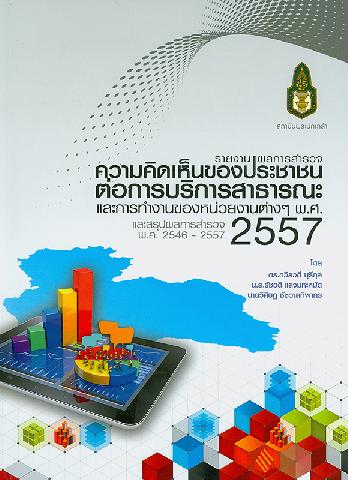 รายงานผลการสำรวจความคิดเห็นของประชาชนเกี่ยวกับความพึงพอใจต่อการบริการสาธารณะ และการทำงานของหน่วยงานต่าง ๆ พ.ศ. 2557 และสรุปผลการสำรวจ พ.ศ. 2546-2557 / สำนักวิจัยและพัฒนา สถาบันพระปกเกล้า ; คณะผู้จัดทำ ถวิลวดี บุรีกุล, รัชวดี แสงมหะหมัด และวิศิษฎ ชัชวาลทิพากร