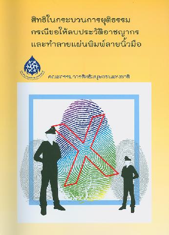| 245 00 ^aสิทธิในกระบวนการยุติธรรม กรณีขอให้ลบประวัติอาชญากร และทำลายแผ่นพิมพ์ลายนิ้วมือ/^cคณะอนุกรรมการสิทธิมนุษยชนด้านกฎหมายและการปฏิบัติที่ไม่เป็นธรรม
