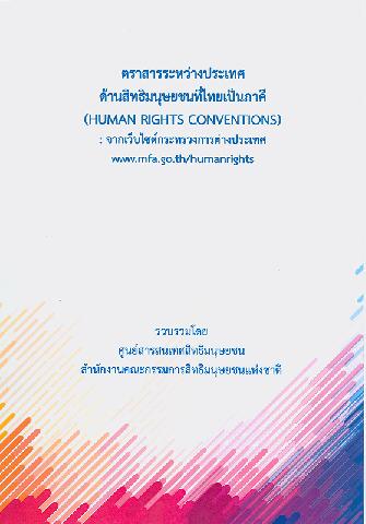 | 500 ^aหนังสือเล่มนี้จัดทำโดยศูนย์สารสนเทศสิทธิมนุษยชน สำนักงานคณะกรรมการสิทธิมนุษยชนแห่งชาติ โดยมีวัตถุประสงค์เพื่อรวบรวมตราสารระหว่างประเทศด้านสิทธิมนุษยชนที่ไทยเป็นภาคี (Human Rights Conventions) จากเว็บไซต์ของกระทรวงการต่างประเทศ (www.mfa.go.th/humanrights) เพื่อใช้ในการศึกษาและวิจัยด้านสิทธิมนุษยชน.