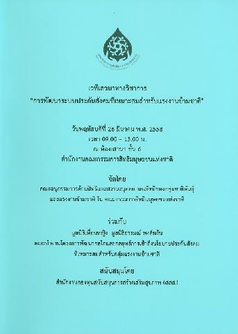 | รายการใกล้เคียง หัวเรื่อง [การพัฒนาประเทศ] หัวเรื่อง [แรงงานข้ามชาติ] หัวเรื่อง [ประกันสังคม] |