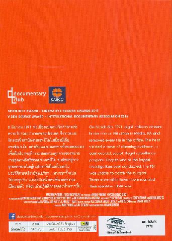 | 520 ^a8 มีนาคม 1971 พลเมืองแปดคนเกิดคำถามต่อความไม่ชอบมาพากลของประเทศ จึงวางแผนงัดแงะเข้าสำนักงานเอฟบีไอในเมืองมีเดียเพนซิลเวเนีย แล้วลักลอบขนเอกสารทั้งหมดออกมา เพื่อเปิดโปงพฤติกรรมสอดแนมคุกคามของหน่วยงานสุดทรงอิทธิพลอย่างเอฟบีไอ จนนำมาสู่การถูกสอบสวนใหญ่ระดับชาติเป็นครั้งแรกในประวัติศาสตร์สหรัฐอเมริกา ...พวกเขาทั้งแปดไม่เคยถูกจับ และนี่เป็นครั้งแรกที่พวกเขายอมเปิดเผยตัว พร้อมเล่าปฏิบัติการสุดระห่ำคราวนั้น!