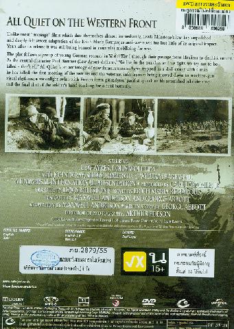 520 ^aClassic version of Remarque's novel which follows a group of German recruits in World War I through their passage from youthful idealism to their bitter disillusionment in the killing fields of the Western front, until the central character declares, "We live in the trenches and we fight ; we try not to be killed -- that's all"