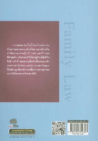 520 3 ^a"กฎหมายครอบครัว" เล่มนี้ จัดพิมพ์ครั้งที่ 18 ได้แก้ไขเพิ่มเติมข้อความบางตอนเล็กน้อย และเพิ่มเติมคำพิพากษาศาลฎีกาปี 2558 และปี 2559 ที่น่าสนใจ ทำให้เข้าใจสิทธิ หน้าที่ และความสัมพันธ์ในครอบครัวระหว่างสามี ภรรยา และบิดามารดากับบุตรได้อย่างถูกต้องชัดเจน เพื่อคุ้มครองและช่วยเหลือครอบครัว ให้สงบสุขโดยชอบด้วยกฎหมา