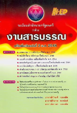 ระเบียบสำนักนายกรัฐมนตรี ว่าด้วยงานสารบรรณ แก้ไขเพิ่มเติม ฉบับที่ 2 พ.ศ.2548 จำนงค์ หอมแย้ม, จิรภาส ชยานันท์ และภราดร หอมแย้ม